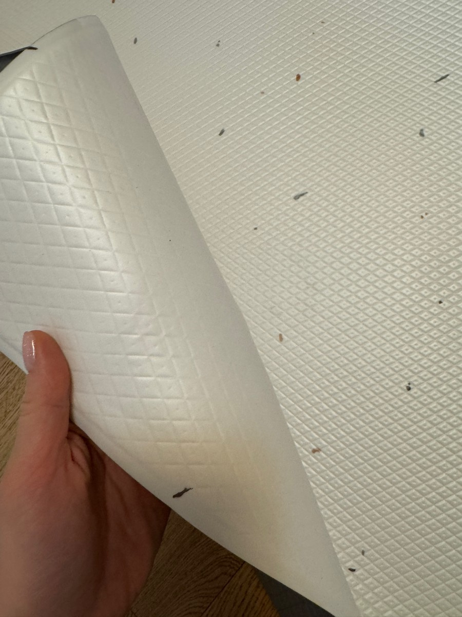 Допускается лёгкий запах нового ПВХ-изделия. Он нетоксичен и соответствует требованиям безопасности, что подтверждено сертификатами. Для ускорения выветривания разверните и разложите ковёр, протрите его влажной салфеткой и обеспечьте проветривание. Как правило, выраженный запах исчезает в первые дни, остаточный — в течение нескольких недель.
